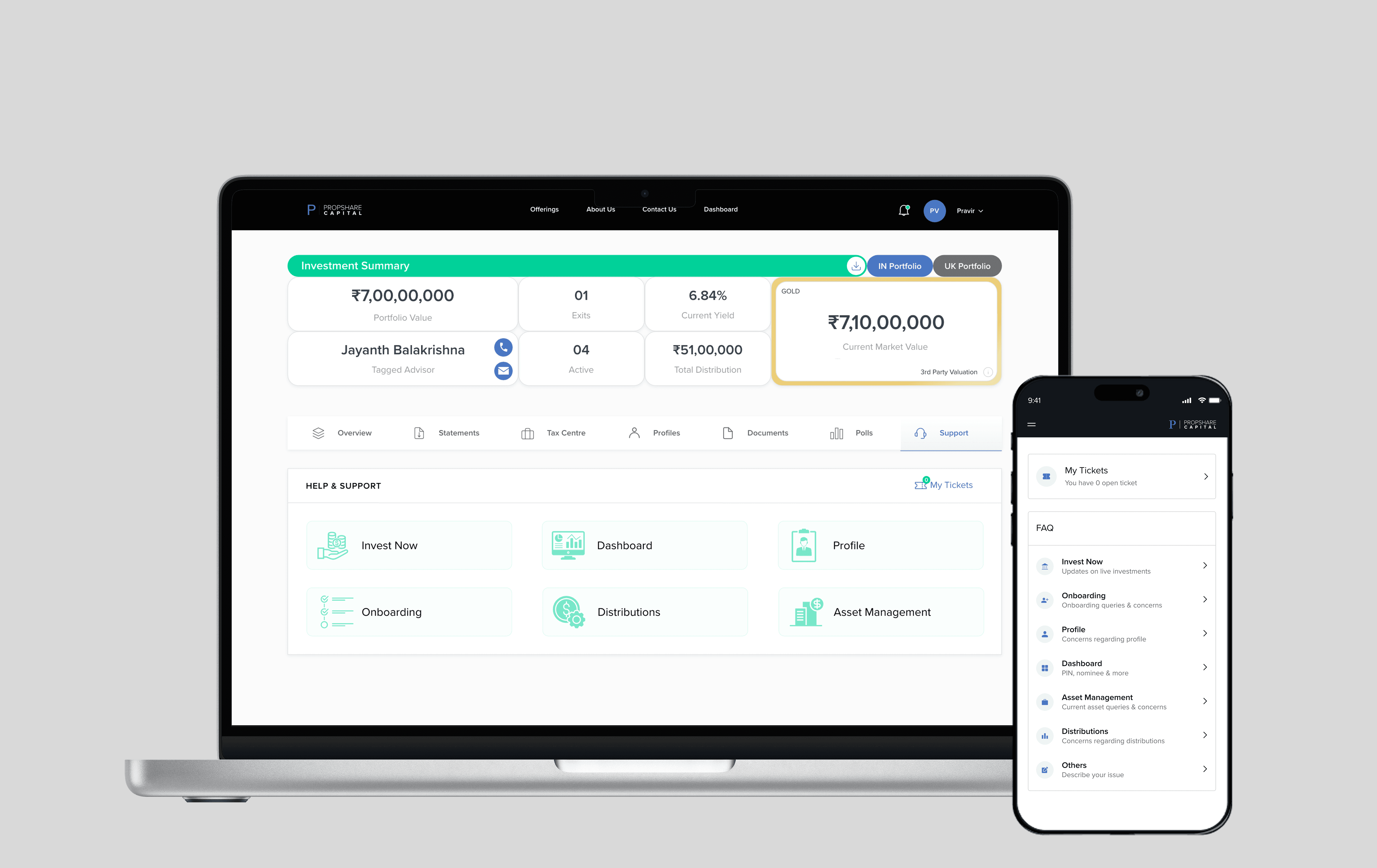 For our internal team, I designed a unified dashboard with complete history of the user's interactions, investments, and past tickets alongside the current conversation. This eliminated the need for "detective work" and allowed our agents to resolve issues with full context.